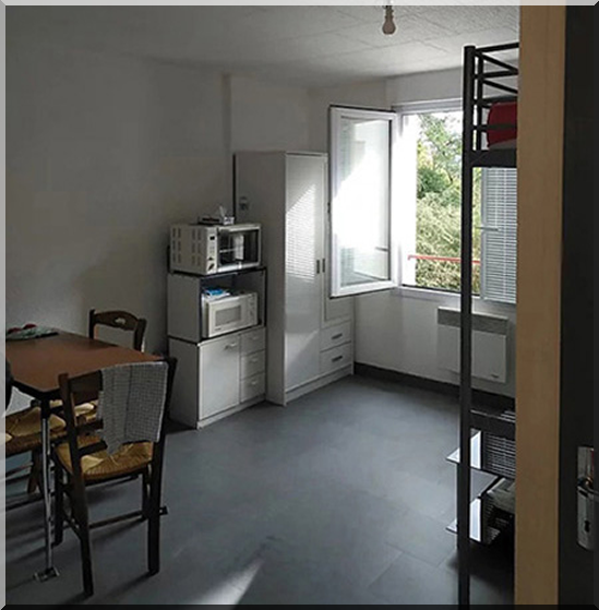 Séjour plein sud - Kitchenette réfrigérateur, plaque vitrocéramique, placard, étagères, VMC